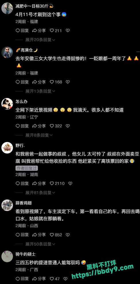 同情与质疑派:大量人痛惜“29岁太年轻了”“一瞬间就没了”,并呼吁“开车慢一点”“珍惜生命”。有人提到类似“安徽三女大学生”事故,感慨交通安全问题。